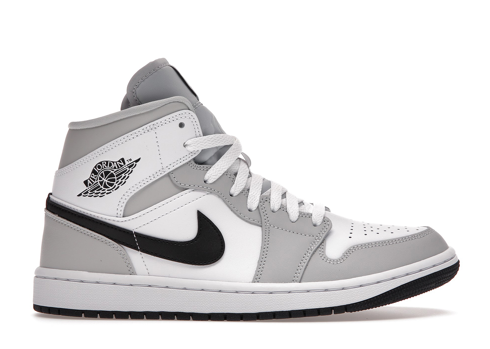 Introducing the Air Jordan 1 Mid Light Smoke Grey (WMNS) by Jordan. These sneakers feature a trendy and versatile light smoke grey colorway, making them a must-have for any sneakerhead. With their iconic Air Jordan 1 design and comfortable fit, these sneakers are perfect for casual wear or athletic activities. Step up your sneaker game with the Air Jordan 1 Mid Light Smoke Grey.