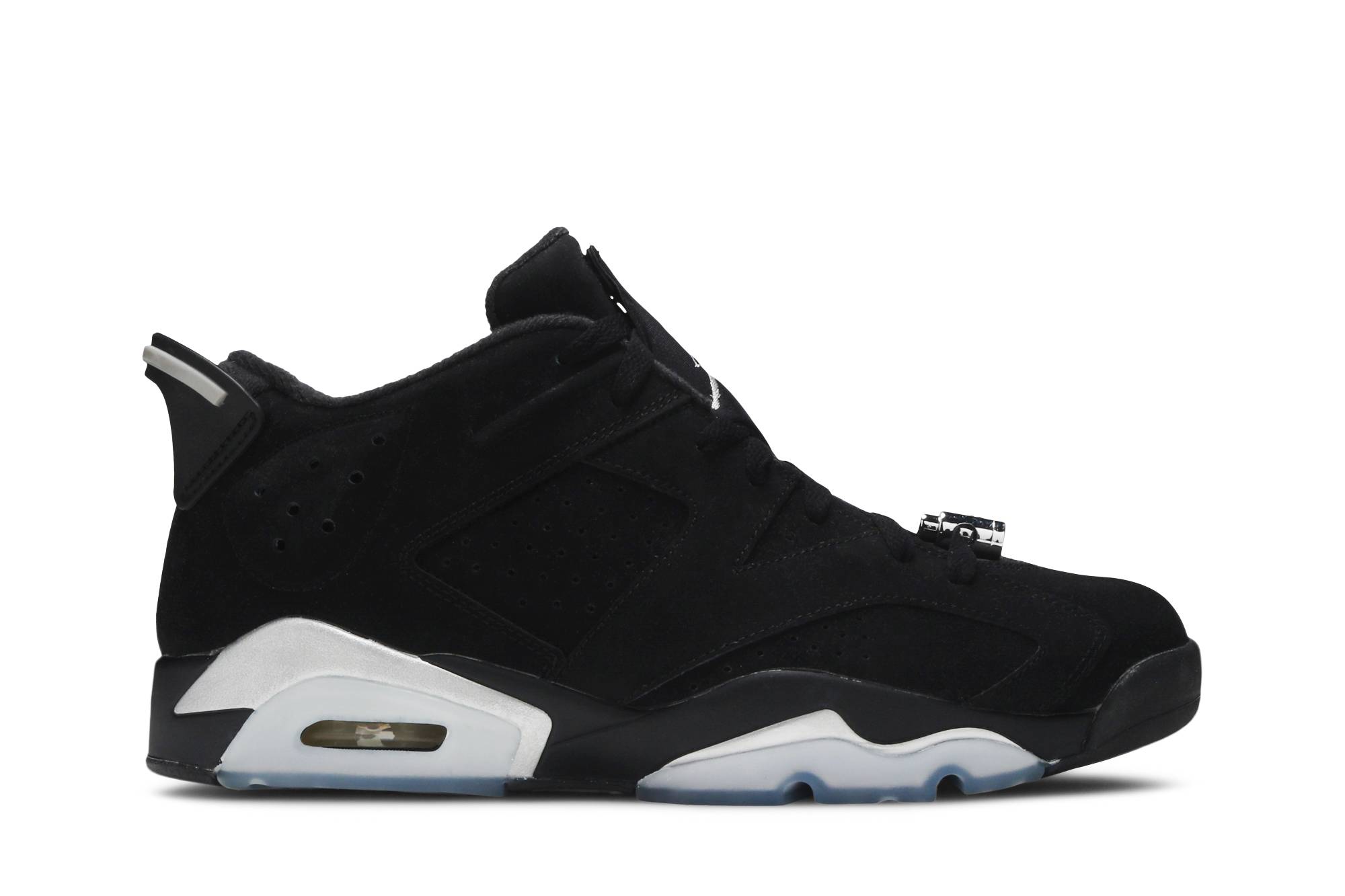 The Air Jordan 6 Retro Low Chrome 2015, also known as Chrome, is a black colorway from the iconic Jordan brand. This low-cut sneaker offers the classic Jordan 6 silhouette with a sleek black upper and chrome accents. This stylish shoe is perfect for sneaker enthusiasts and Jordan fans alike. Shop now for the Air Jordan 6 Retro Low Chrome 2015.