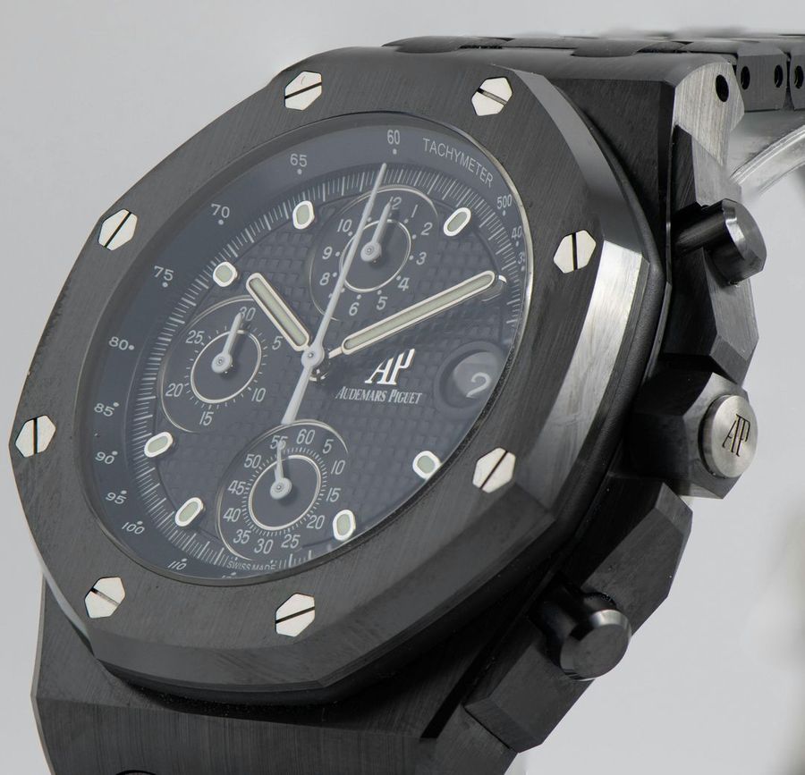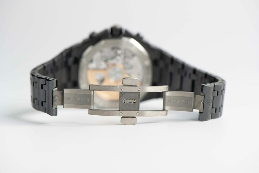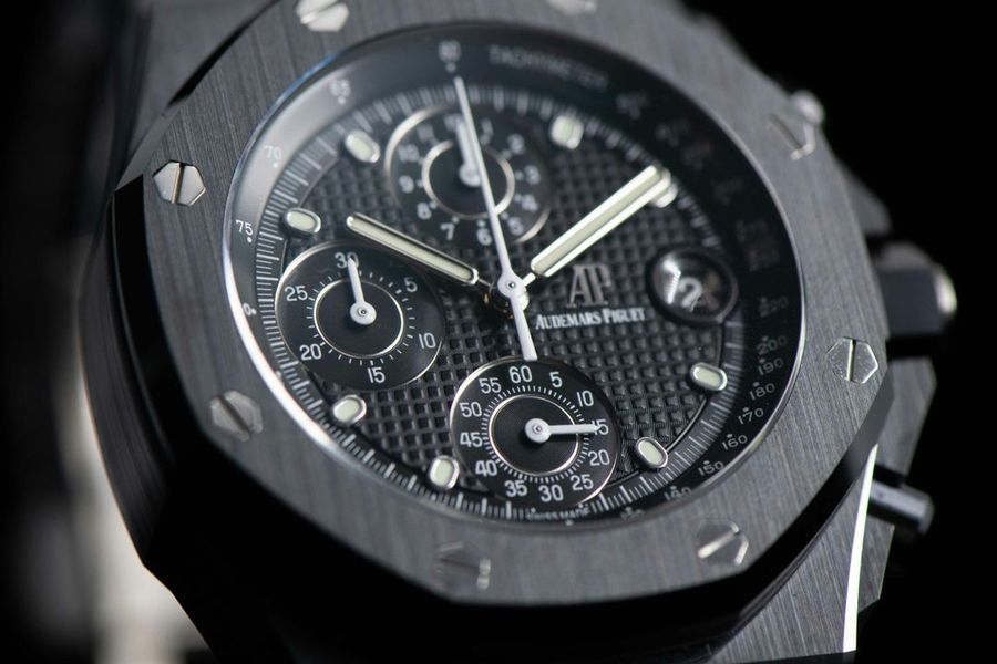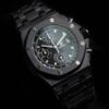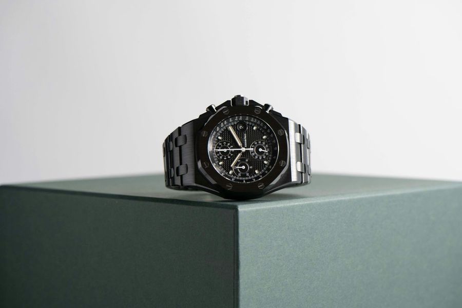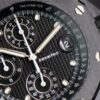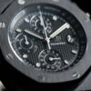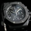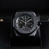 The Audemars Piguet Royal Oak Offshore 42mm Ref 26238CE is a bold and innovative timepiece. Crafted from black ceramic, this watch features a robust 42mm case and a sleek black dial with “Mga Tapisserie” pattern. The white gold hour markers and hands offer excellent legibility, while the chronograph functions ensure precision timing. Powered by the selfwinding Calibre 4404, it provides a power reserve of approximately 70 hours. The black ceramic bracelet adds to its durability and contemporary style.
