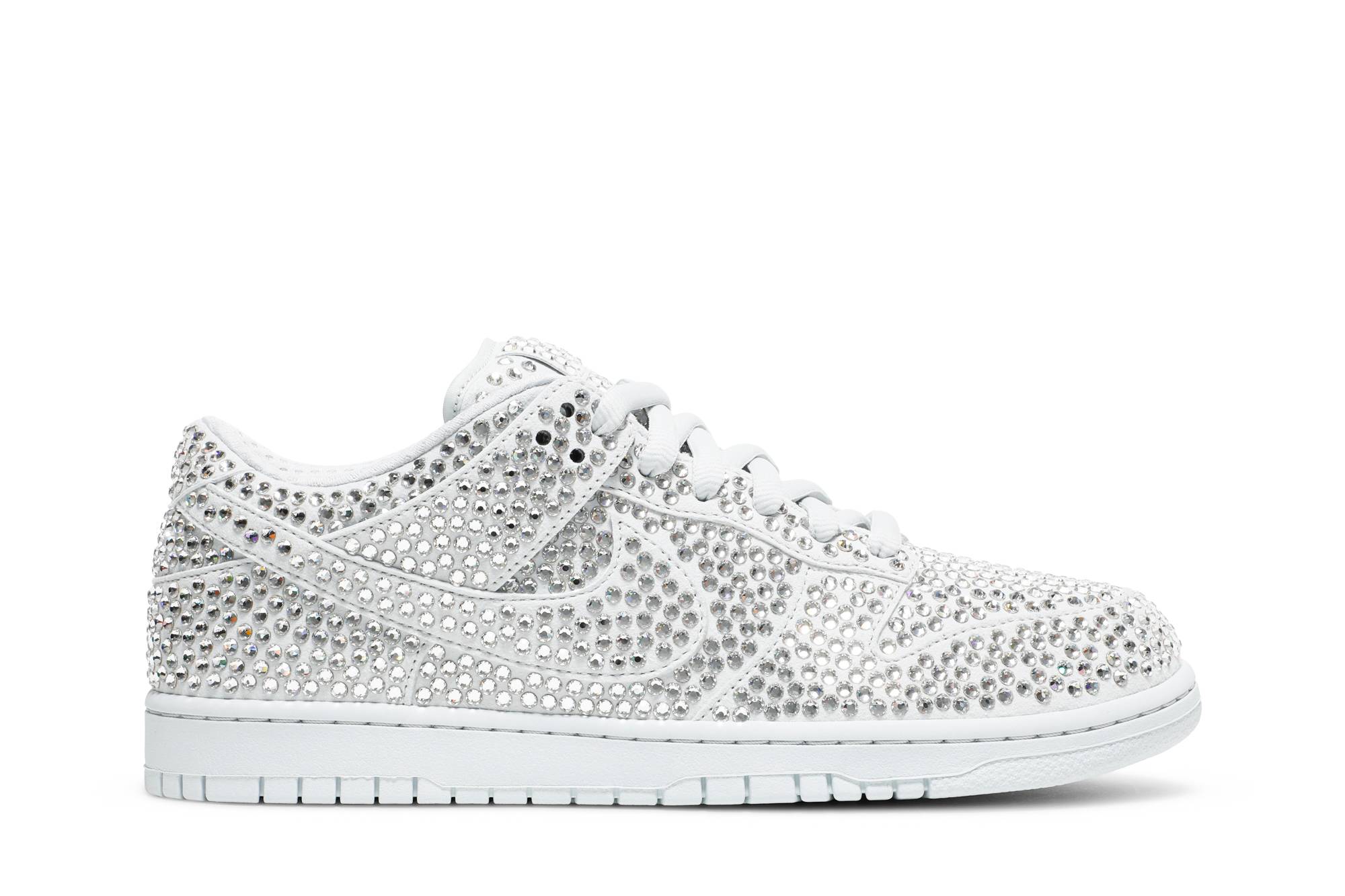 Introducing the highly coveted Cactus Plant Flea Market x Swarovski x Nike Dunk Low Pure Platinum sneakers. Collaborating with renowned brands, Nike presents these dazzling kicks that feature stunning silver accents. With its unique design and luxurious Swarovski crystal detailing, these Pure Platinum sneakers are a must-have for sneaker enthusiasts and fashion-forward individuals alike. Standout in style with these limited-edition Nike Dunk Low sneakers.
