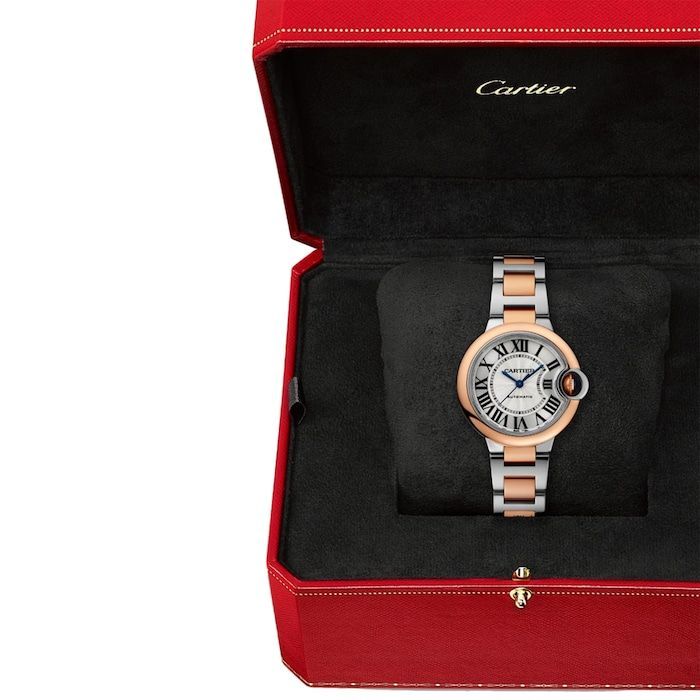 Cartier Ballon Bleu de Cartier watch, 33 mm, mechanical movement with automatic winding. Steel case, rose gold W2BB0032
