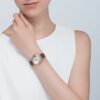 Color: Brown, providing a classic and versatile look that complements the pink gold case.