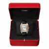 The Cartier Santos-Dumont Watch Extra-Large Model in this configuration is a striking blend of luxury and modernity. The combination of 18K rose gold and stainless steel gives the watch a distinguished and versatile look. The rose gold bezel adds a touch of warmth and luxury, while the stainless steel case ensures durability and a contemporary edge. The silvered opaline dial with black Roman numerals and blued steel hands maintains Cartier?s timeless aesthetic, providing clear readability and elegant contrast.