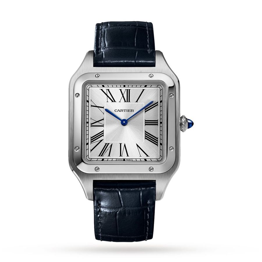 Cartier Santos-dumont Watch Extra-Large Model, Hand-Wound Mechanical Movement, Steel, Leather WSSA0032