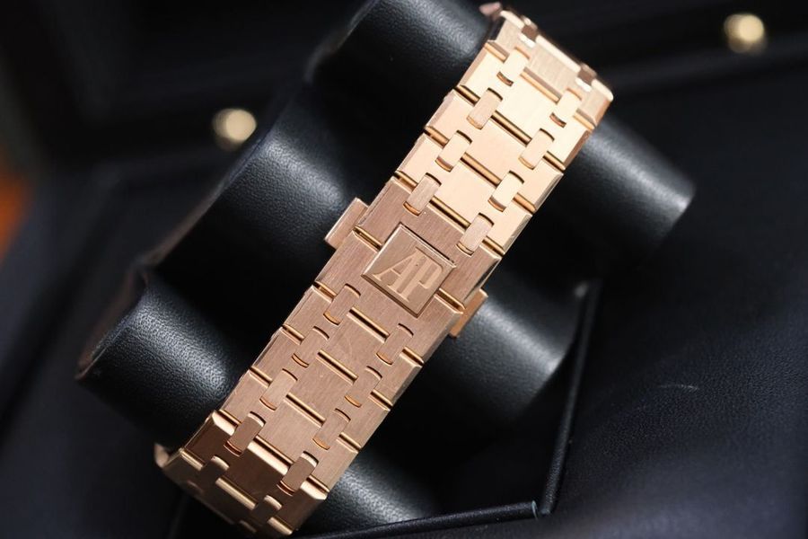 Material: Integrated 18K rose gold bracelet. This bracelet ensures both robustness and comfort, featuring Audemars Piguet’s patented folding clasp for secure and easy closure.