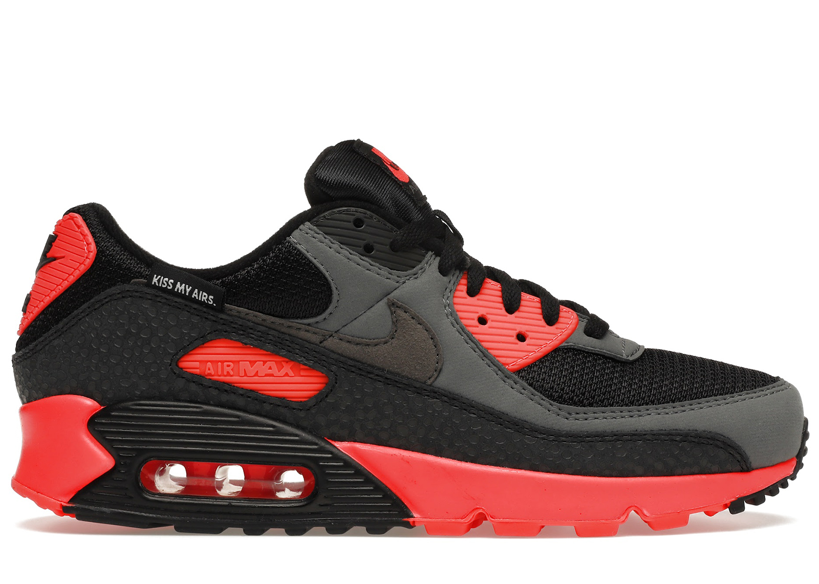 The Nike Air Max 90 Kiss My Airs in Black is a stylish and iconic sneaker from Nike. With its signature Air Max cushioning and sleek design, it offers both comfort and style. Perfect for everyday wear or for making a fashion statement, these sneakers are a must-have for any Nike fan.