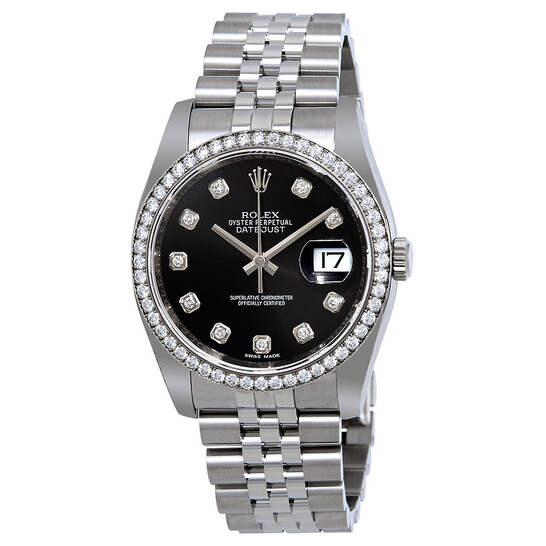 Rolex Oyster Perpetual Datejust 36 Black Dial Stainless Steel Rolex Jubilee Automatic Ladies Watch 116244BKDJ.