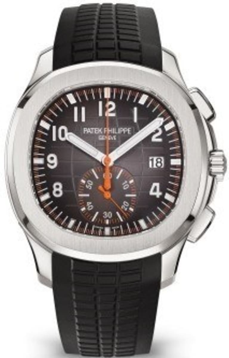 Brand New Patek Philippe Aquanaut Black Dial Composite Strap Men’s Watch Model 5968A-001. Deployment with Foldover clasp. Dial description: Silver tone hands and Arabic Numeral hour markers with minute markers around the outer rim with a sub-dial on a Black dial. Automatic movement. Calendar: Date at 3 o’clock. Chronograph sub-dials display: 60 Minute. Powered by Patek Philippe Caliber CH 28-250 C engine with 55 hours power reserve. Watch functions: Date, Power Reserve, Hour, Minute, Second, Flyback Chronograph. Screw Down crown. Octagonal case shape. Case size: 42.2mm. Case thickness: 11.9mm. Transparent case back. 120 Meters – 400 Feet water resistant. 2 year WatchMaxx warranty. Also known as model: 5968A001.