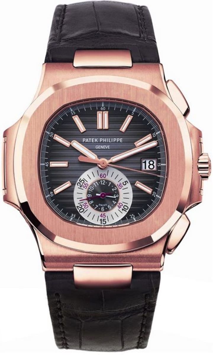 Brand New Patek Philippe Nautilus Men’s Watch Model 5980R-001. 18kt Rose Gold case with Alligator Leather strap. Hidden Folding clasp. 18kt Rose Gold bezel. Brown dial. Chronograph Automatic Self Winding movement. Screwed Down crown. Scratch Resistant Sapphire crystal. Transparent case back. 120 Meters – 400 Feet water resistant. 2 year WatchMaxx warranty.