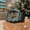 The Richard Mille RM 11-03 Ultimate Edition Flyback Chronograph in carbon is a head-turning timepiece. The marriage of high-tech carbon fiber with vibrant turquoise accents creates a bold and futuristic look. The skeletonized dial provides a mesmerizing glimpse into the complex mechanics within, while the luminescent hands ensure ultimate functionality.
