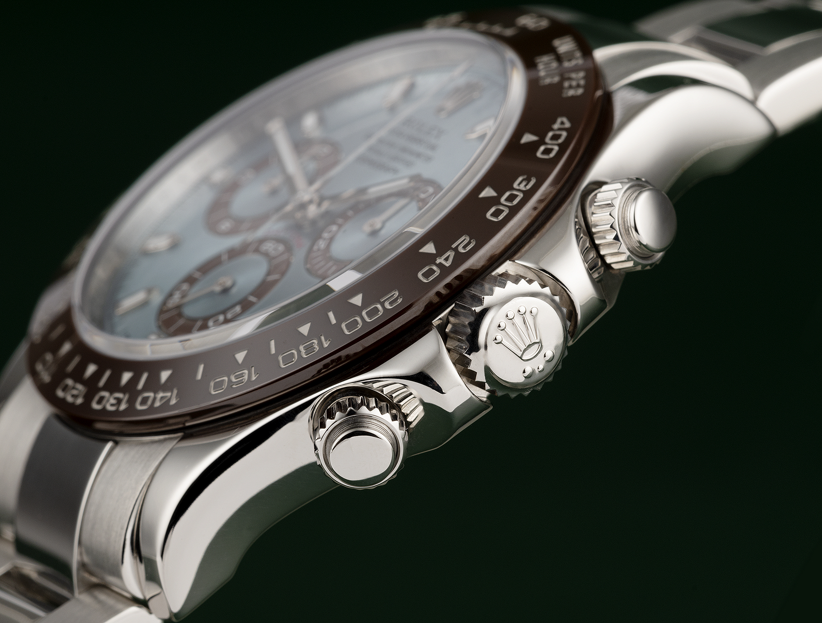 This extremely durable bezel also offers an exceptionally legible tachymetric scale, thanks to the deposition of a thin layer of platinum in the numerals and graduations via a PVD (Physical Vapour Deposition) process