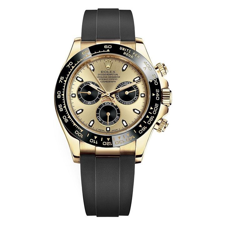 Sporty Elegance: The champagne dial and black subdials provide a striking contrast, adding to the watch’s luxurious appeal.