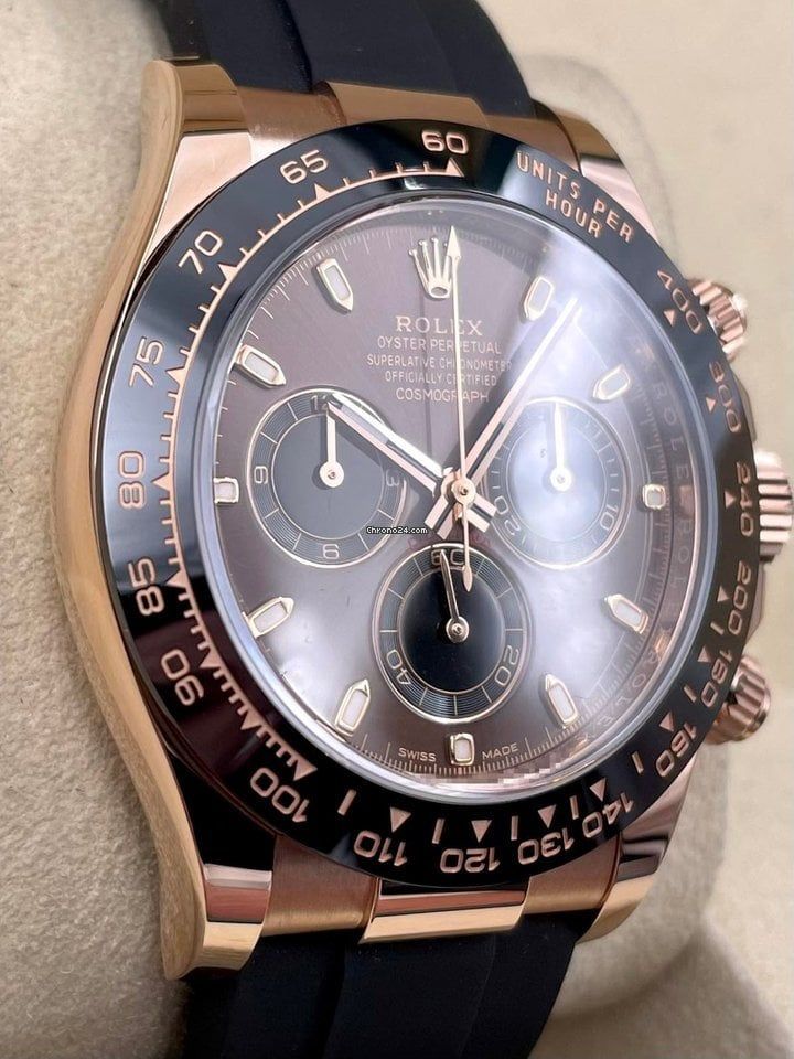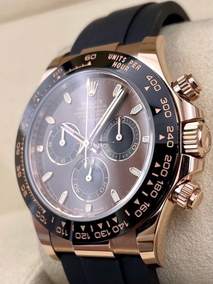 Rolex Cosmograph Daytona Chocolate Baguette Oysterflex Everose Gold Mens Watch 116515Ln