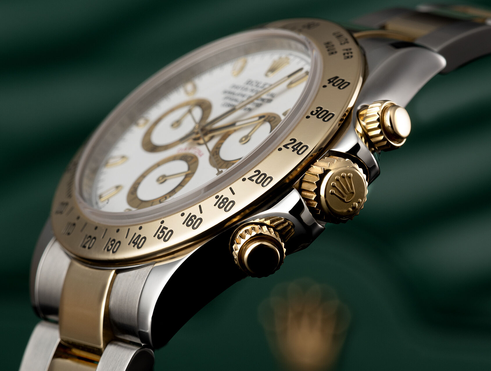 This scale offers optimal legibility, making the Cosmograph Daytona the ideal instrument for measuring speeds up to 400 units per hour, expressed in kilometres or miles.