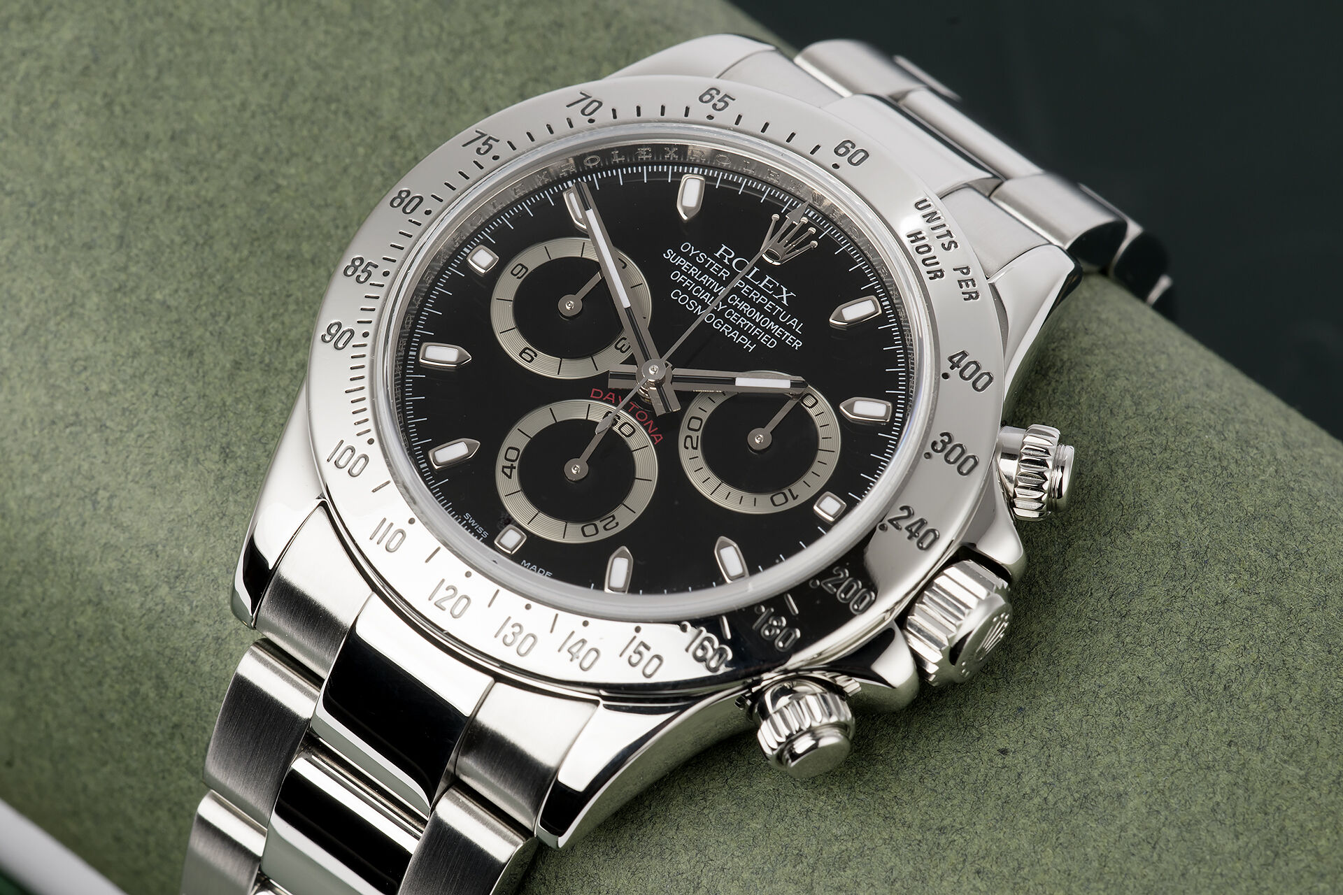 With its tachymetric scale, its three counters and its pushers, the Cosmograph Daytona was designed to be the ultimate timing tool for endurance racing drivers