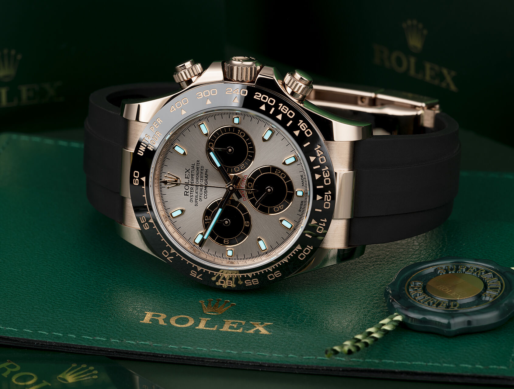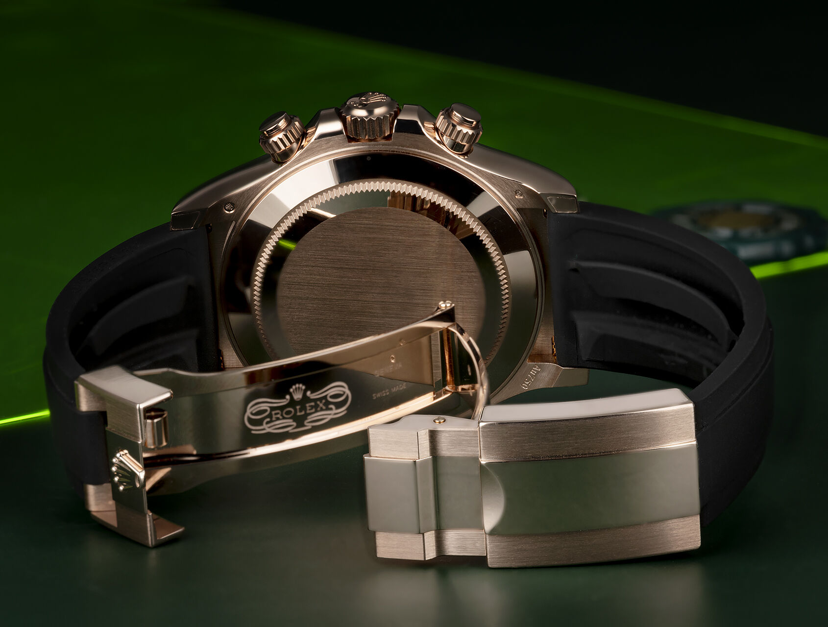 The 18 ct gold versions of the Cosmograph Daytona with a Cerachrom bezel are available with an Oysterflex bracelet