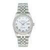 36mm stainless steel case with white gold fluted bezel.