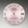 • Dial color: Pink dial with a fine sunrays, applied polished 18k White Gold Roman numerals as hour markers and 11 diamonds on large numeral VI