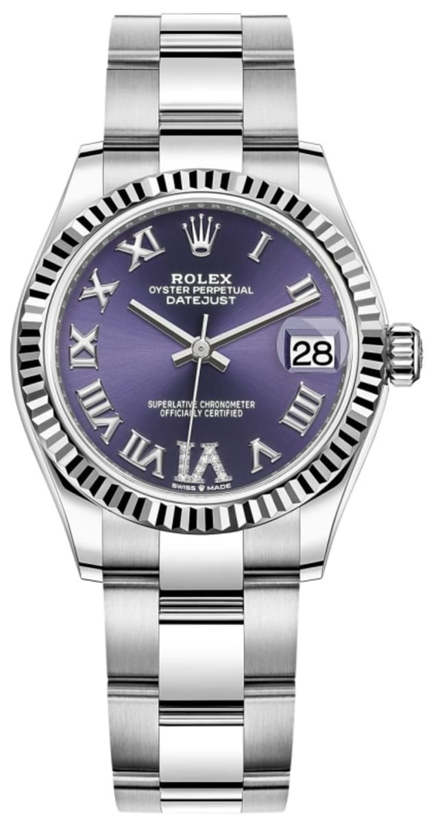 Brand New Rolex Datejust 31 Stainless Steel and White Gold Aubergine Roman Diamond Dial Women’s Luxury Watch Model M278274-0025