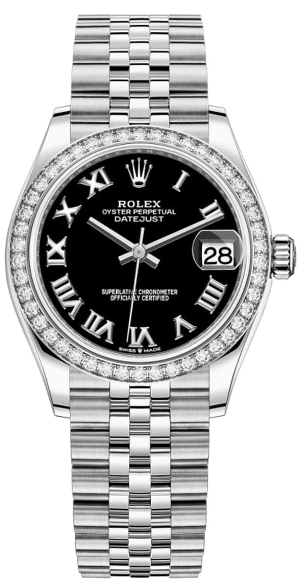 Brand New Rolex Datejust 31 Stainless Steel and White Gold Black Roman Dial Diamond Bezel Women’s Luxury Watch Model M278384RBR-0002