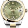 Brand New Rolex Datejust 31 Stainless Steel and Yellow Gold Olive Green Pave Roman Dial Diamond Bezel Women’s Luxury Watch Model M278383RBR-0016
