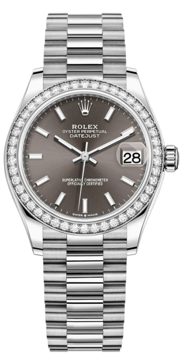 Brand New Rolex Datejust 31 White Gold Dark Grey Dial Diamond Bezel Women’s Luxury Watch Model M278289RBR-0014