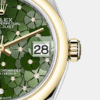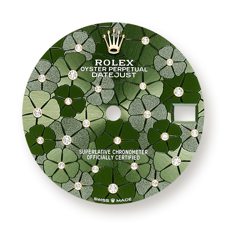 • Dial color: Olive green dial with floral motif and 24 Diamonds in 18k Yellow Gold settings
