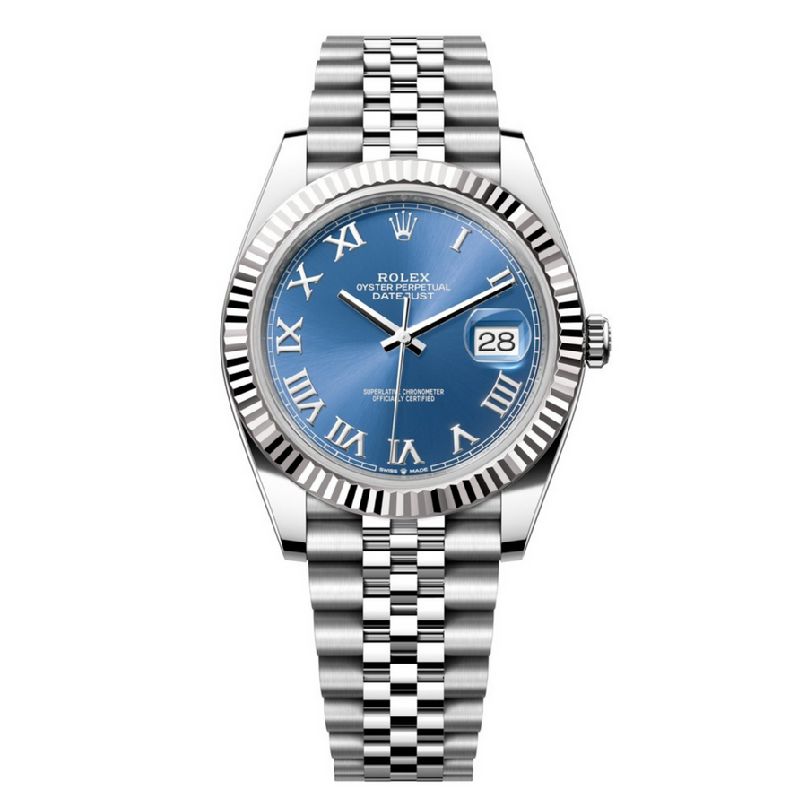 The Rolex Datejust 36 Ref 116234 AR is a classic timepiece known for its elegance and precision. It features a 36mm Oystersteel case paired with an 18k white gold fluted bezel, offering a sophisticated look. The blue dial is adorned with Roman numeral hour markers, enhancing its refined appearance. Powered by the Rolex Calibre 3135, this automatic watch provides a power reserve of approximately 48 hours. The Jubilee bracelet ensures comfort and a luxurious feel.