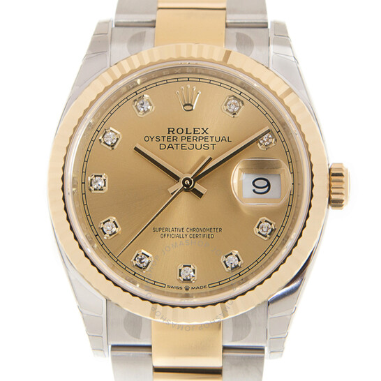 Rolex Datejust 36 Champagne Diamond Dial Men’s Steel and 18kt Yellow Gold Oyster Watch 126233CDO.