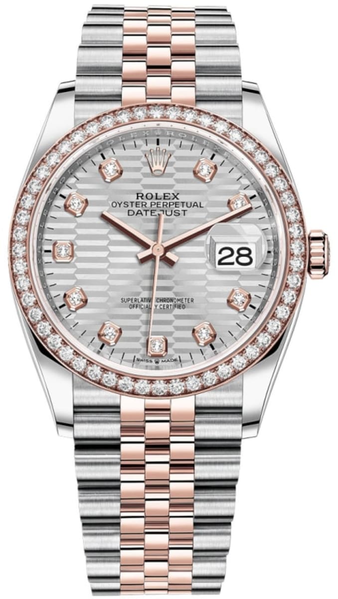 Rolex Datejust 36 Steel & Everose Gold Silver Fluted-Motif Diamond Dial Diamond Bezel Women’s Watch M126281RBR-0027