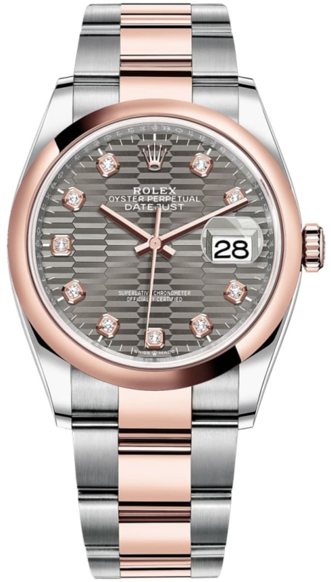 Brand New Rolex Datejust 36 Steel & Everose Gold Slate Fluted-Motif Diamond Dial Women’s Luxury Watch Model M126201-0042