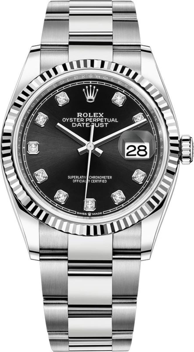 Brand New Rolex Datejust 36 Steel & White Gold Black Diamond Dial Women’s Luxury Watch Model M126234-0028