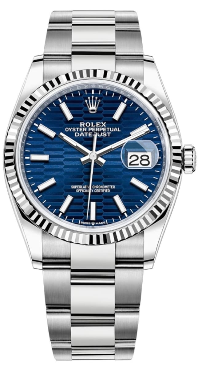 Brand New Rolex Datejust 36 Steel & White Gold Blue Fluted-Motif Dial Women’s Luxury Watch Model M126234-0050
