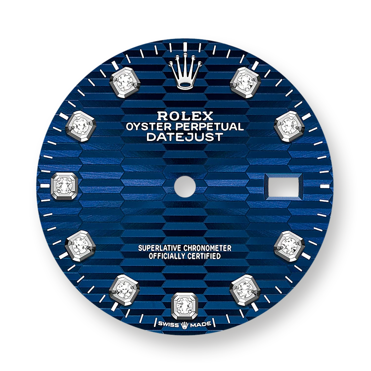 • Dial color: Bright blue dial fluted motif and 10 Diamonds as hour markers framed in 18k White Gold