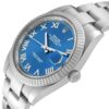 Dial: | Blue dial with raised Roman numerals Minute markers around the outer rim Date window at 3 o’clock aperture. |