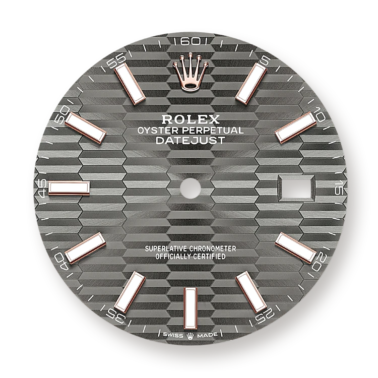 • Dial color: Slate dial fluted motif and Indexes of 18k Everose Gold with luminous fill as hour markers