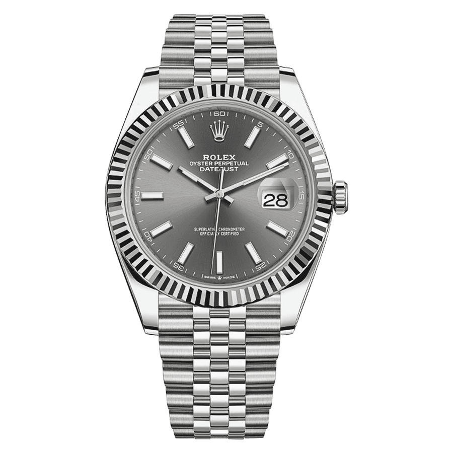 The Rolex Datejust 41 Ref 126334 combines timeless elegance with modern sophistication. Featuring a 41mm Oystersteel case and an 18k white gold fluted bezel, this watch exudes luxury and durability. The rhodium dial, adorned with luminous hour markers and hands, ensures excellent readability. Powered by the Rolex Calibre 3235, it offers precise timekeeping and a power reserve of approximately 70 hours. The Jubilee bracelet provides both comfort and a refined look, with a concealed Crownclasp.