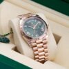 Conclusion: The Rolex Day-Date 40 Olive Green Dial 228235 60th Anniversary Edition is more than just a timepiece; it is a blend of luxurious materials, sophisticated design, and technical excellence. The unique olive green dial, paired with the robust Everose gold case and President bracelet, adds a touch of timeless sophistication to this esteemed watch. Owning this timepiece means acquiring a legacy of innovation and artistry that defines Rolex.