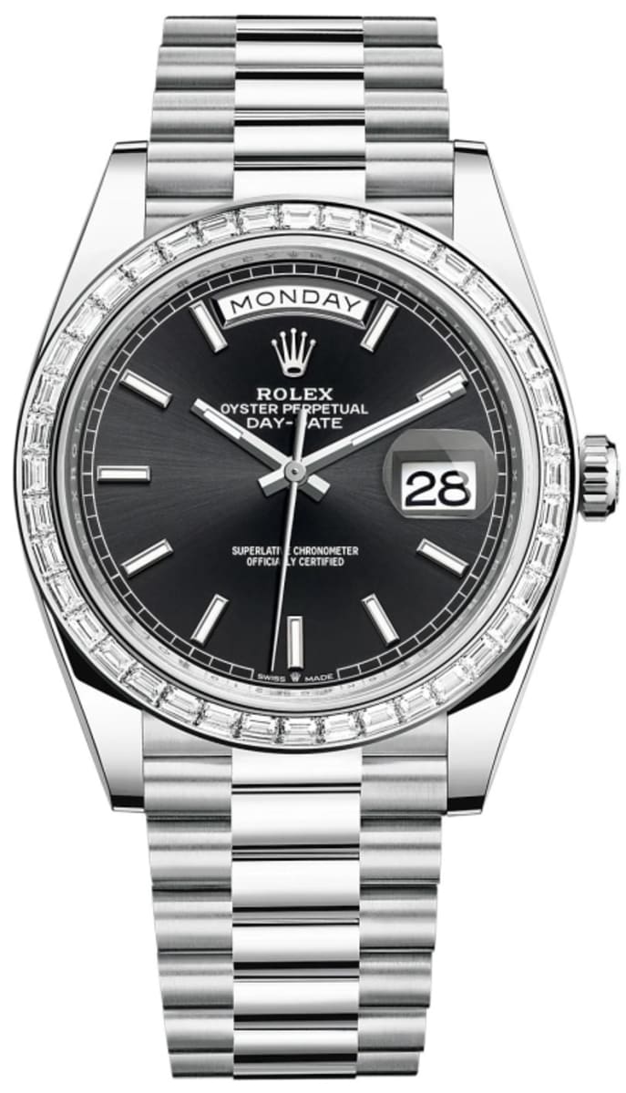 Brand New Rolex Day-Date 40 Platinum Black Dial Diamond Bezel Men’s Watch Model M228396TBR-0024