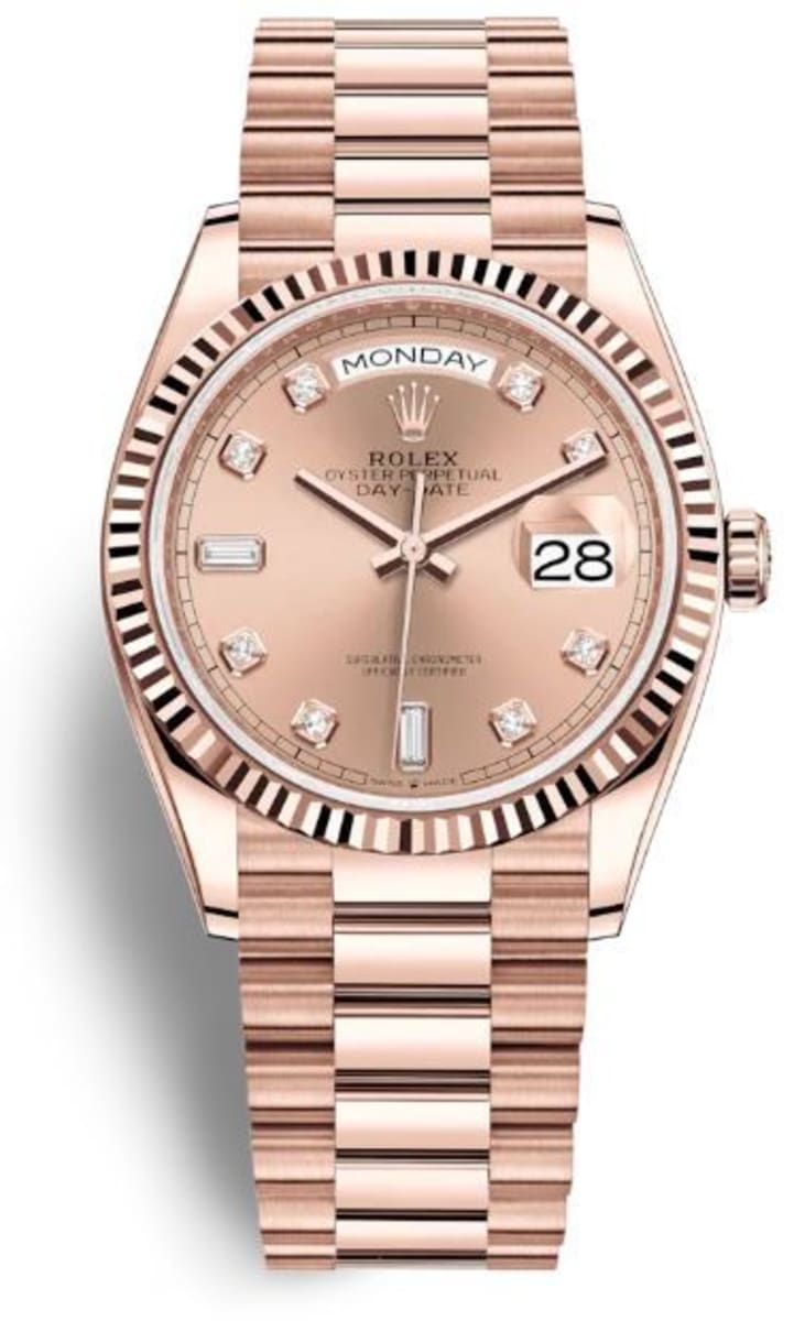18kt Everose Gold case with 18K Everose Gold President style watch band