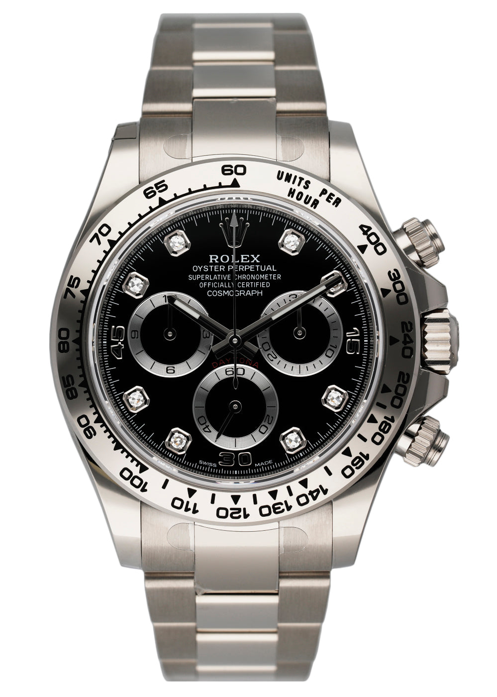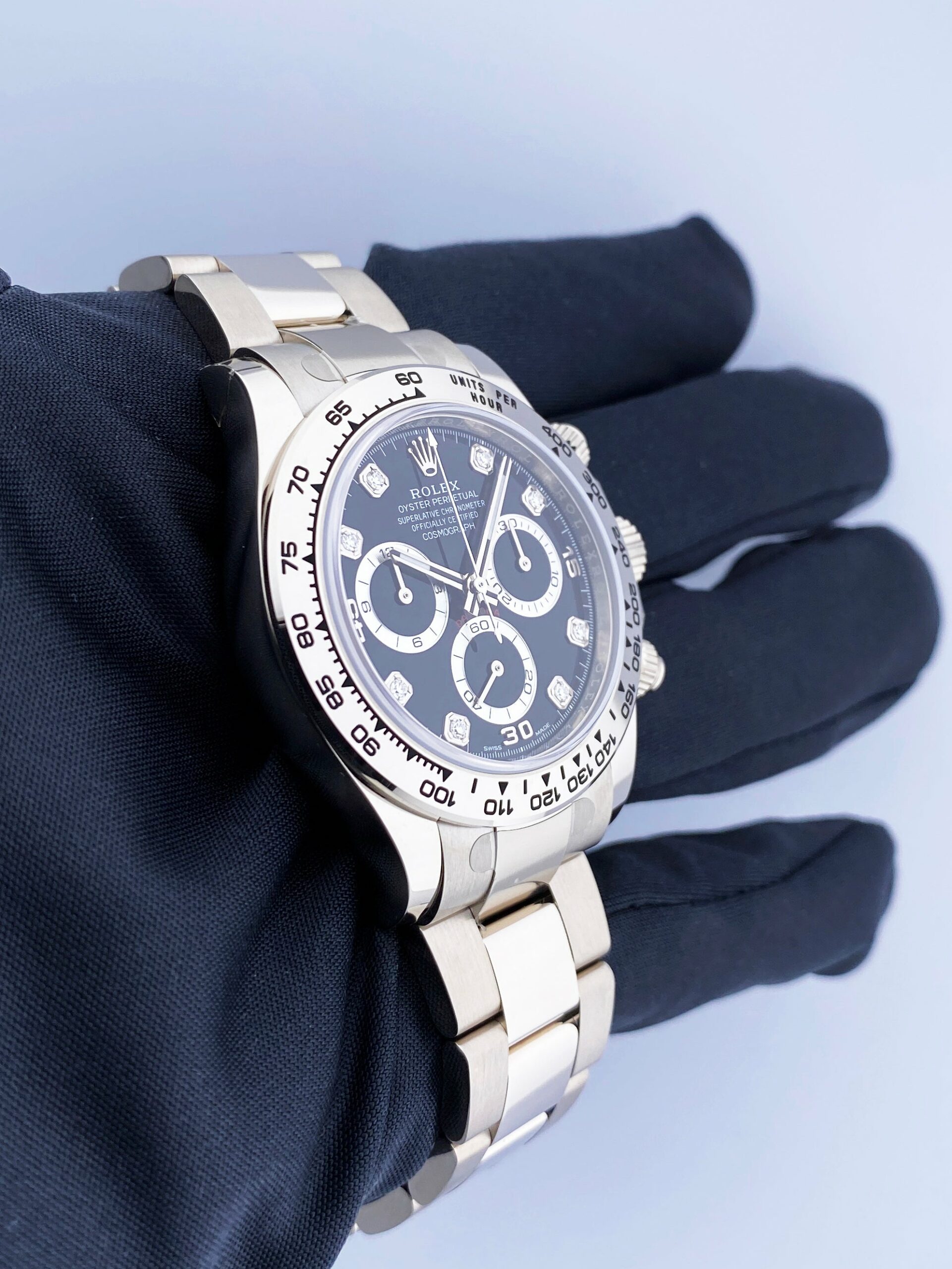 Black??dial with luminous silver-tone??hands and original factory diamond set??hour marker