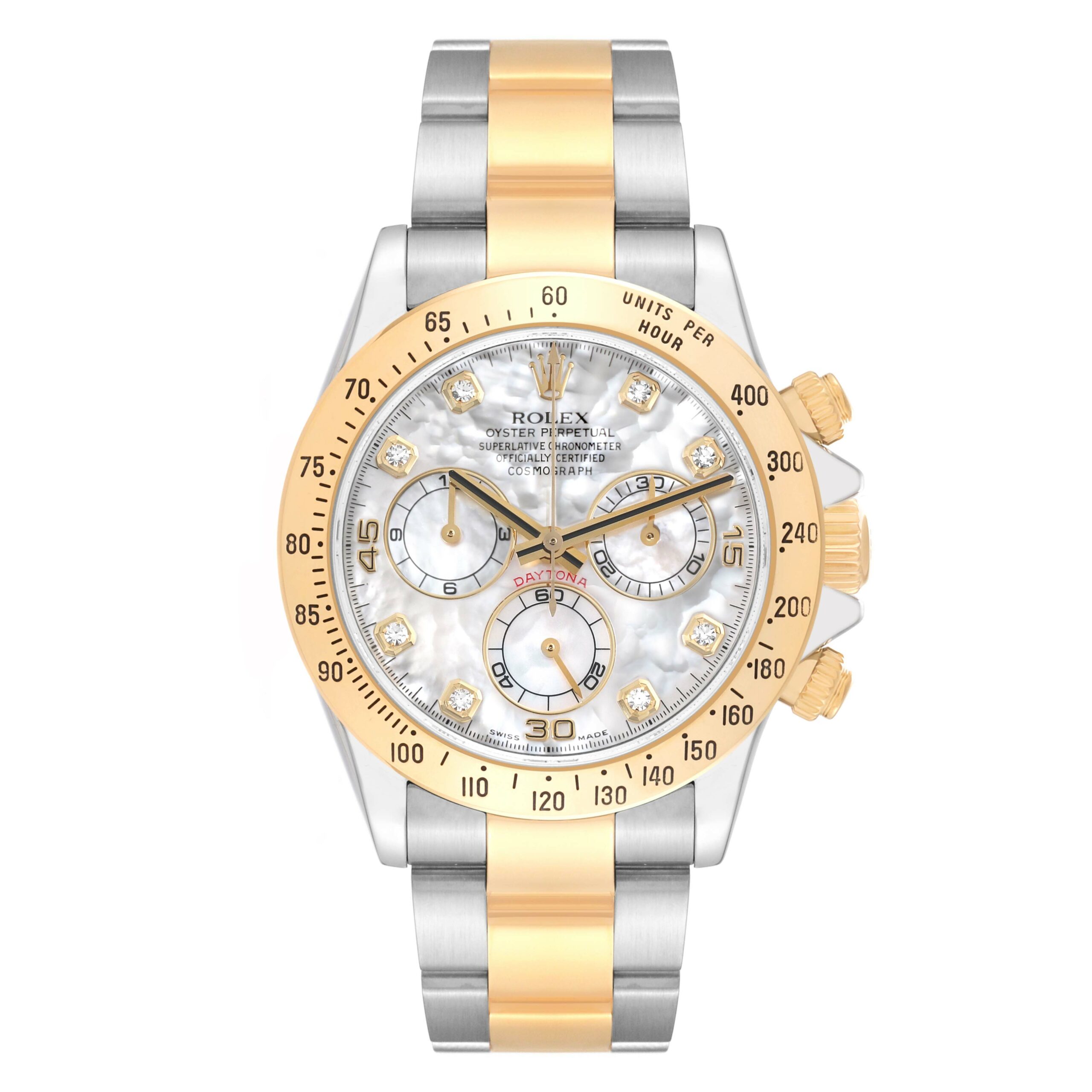 Model Name: Rolex Daytona Yellow Gold Steel Mother of Pearl Diamond Mens Watch 116523