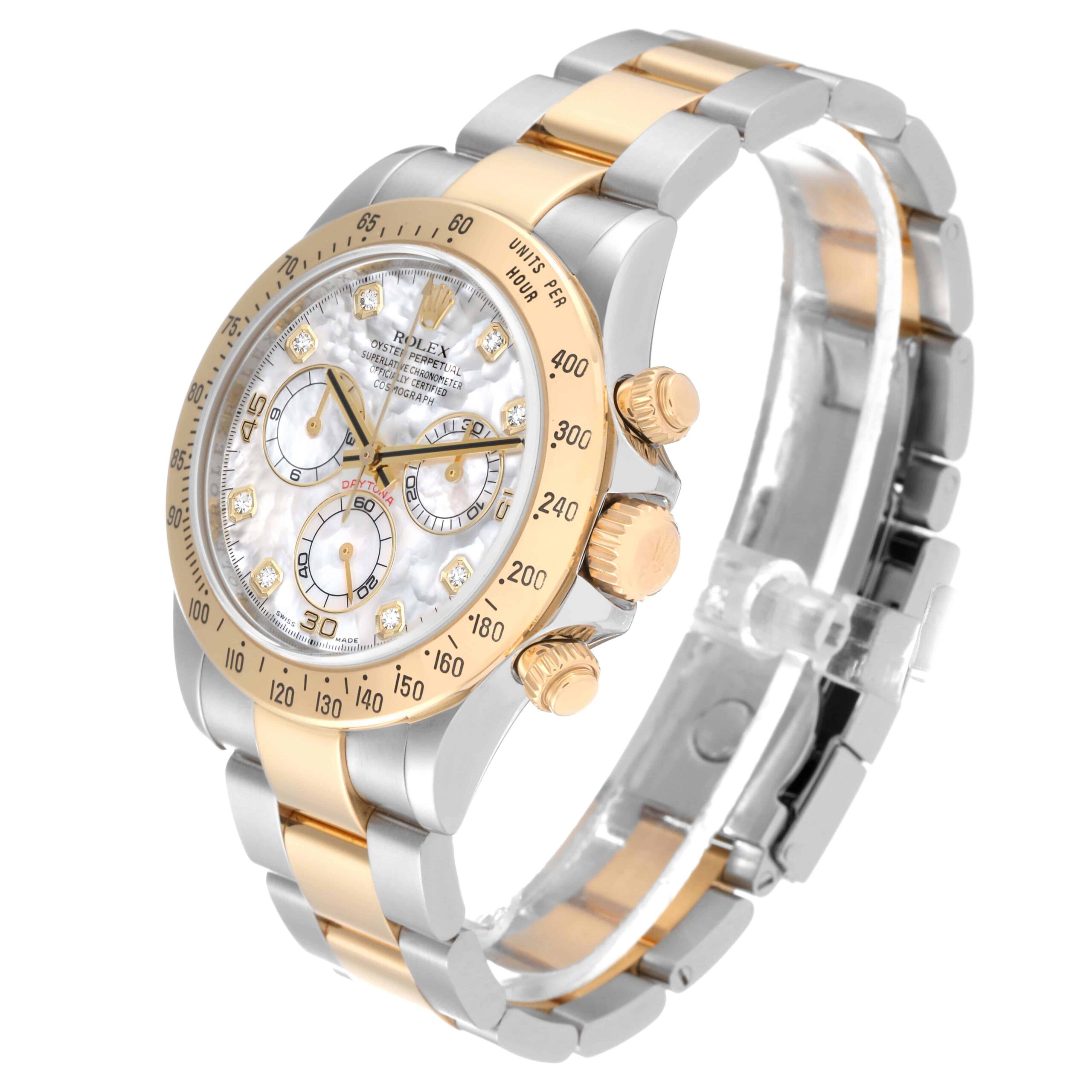 Rolex Daytona Yellow Gold Steel Mother of Pearl Diamond Mens Watch 116523