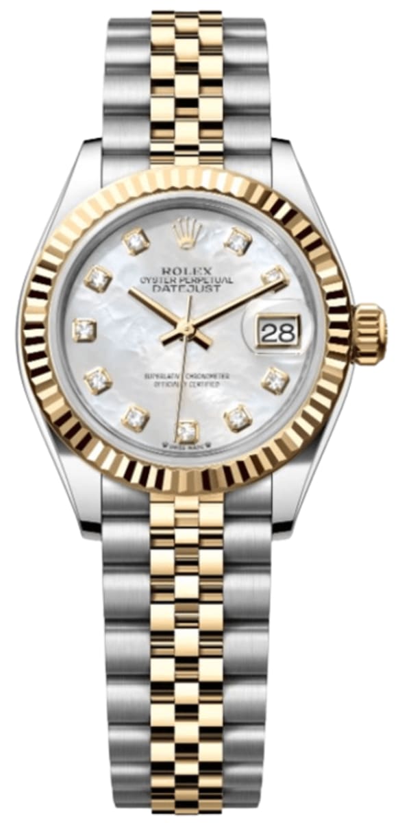 Brand New Rolex Lady-Datejust 28 Stainless Steel and Yellow Gold Automatic Mother of Pearl Diamond Dial Women’s Luxury Watch Model M279173-0013