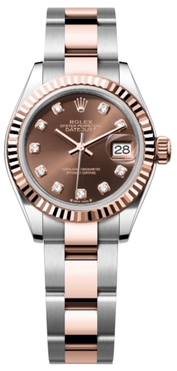 Brand New Rolex Lady-Datejust 28 Steel and Everose Gold Automatic Chocolate Diamond Dial Steel Women’s Luxury Watch Model M279171-0012