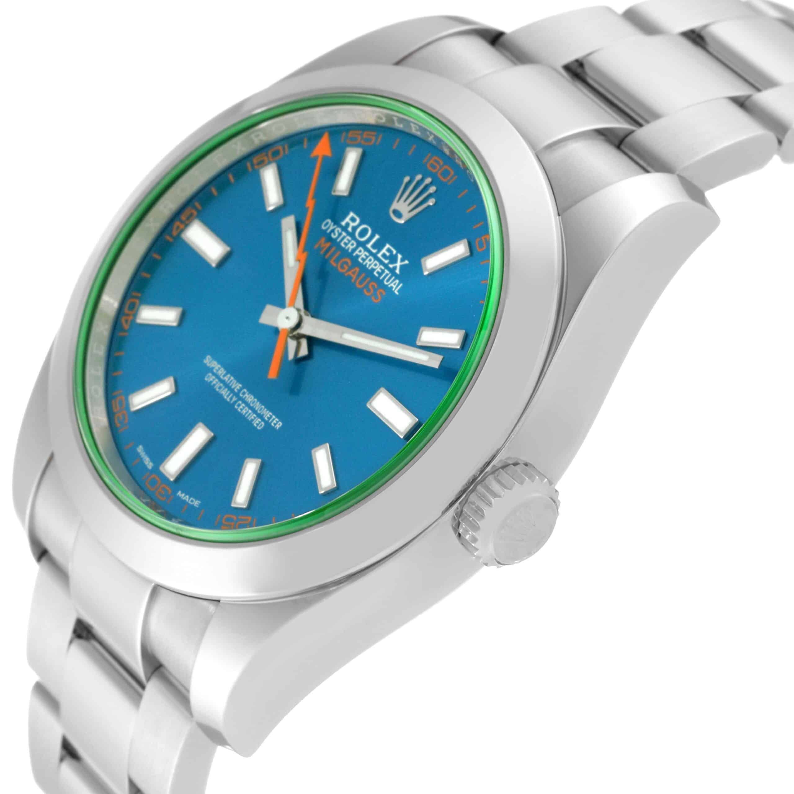 Rolex Milgauss Blue Dial Green Crystal Steel Mens Watch 116400GV Box Card