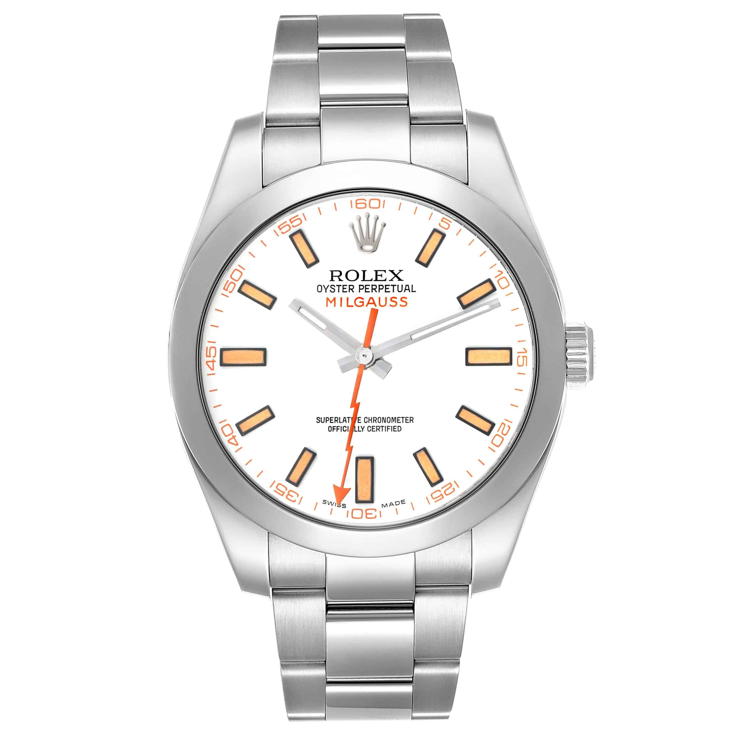 Rolex Milgauss White Orange Dial Steel Mens Watch 116400 Box Card