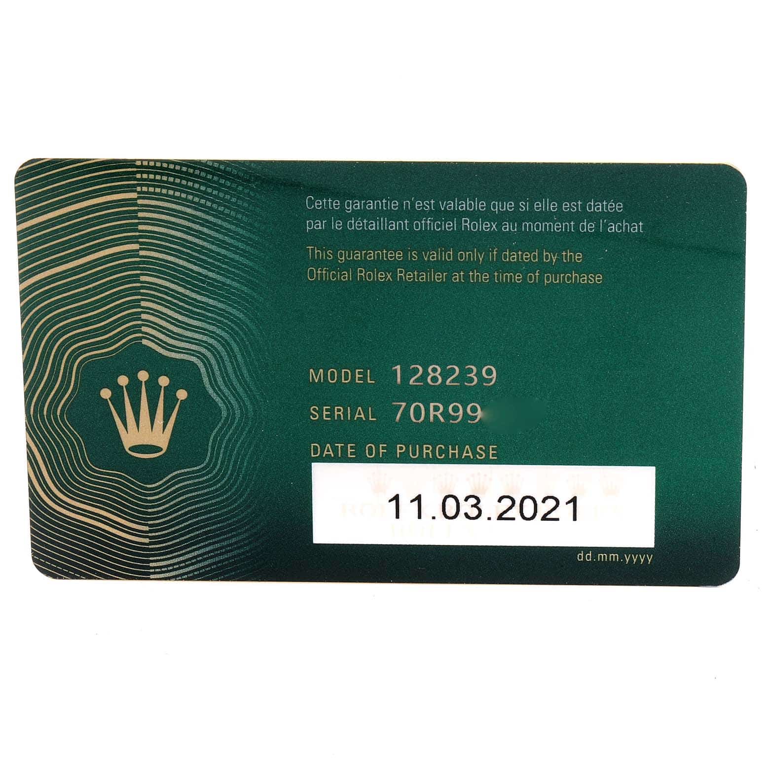Box & Papers: | Rolex box and card. |